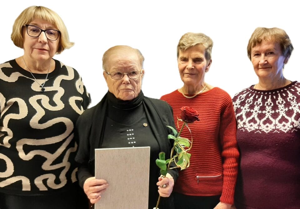 Kultainen ansiomerkki Riitalle luovutettiin syyskokouksessa 2025.